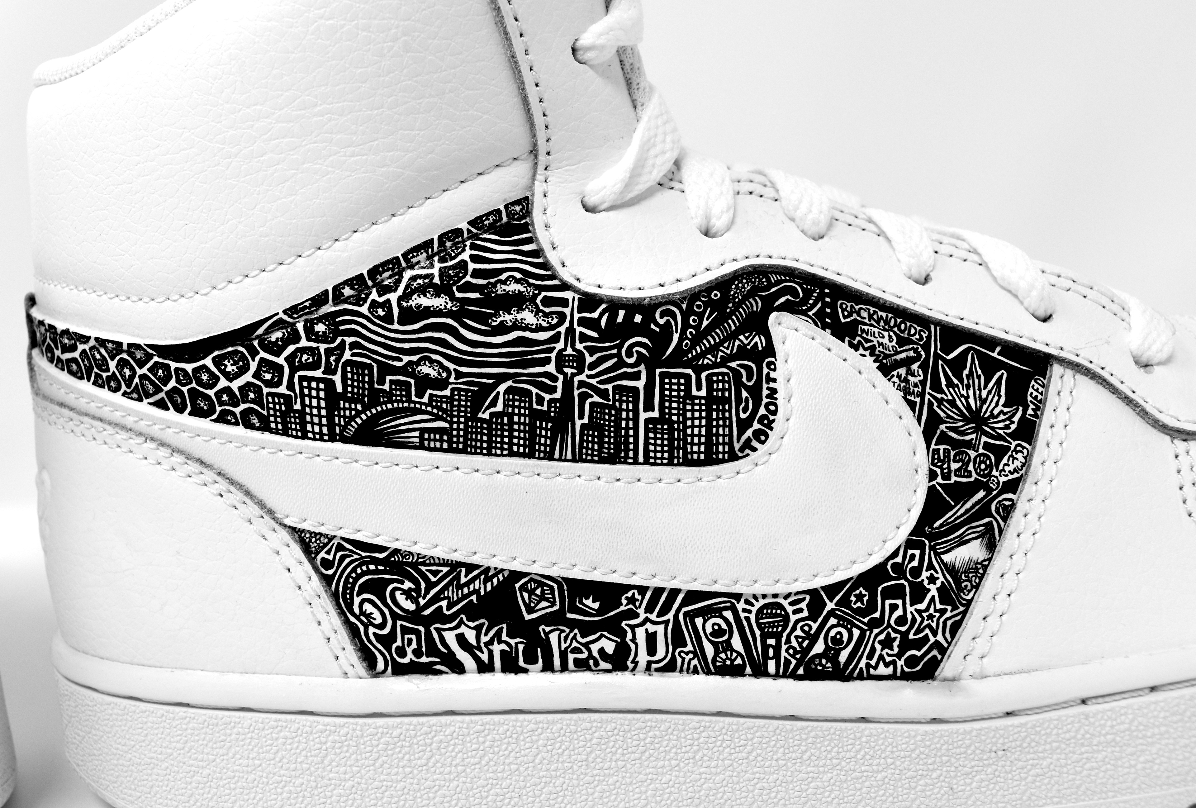 (2020) ππ―π¬ π°π― ππ¦π―βπ΄ ππͺπ¬π¦ ππ£π³π°π― ππͺπ₯ | πππ π©π’π―π₯ π₯π³π’πΈπ― This pair of Nikes has over 30 symbols that represent the wearerβs hobbies, interests, and relationship.See if you can spot some: Toronto, Styles P, Rap music, Weed, Backwoods, giraffe print, dogs, and tacos to name a few.