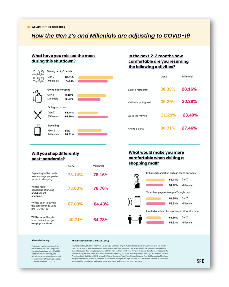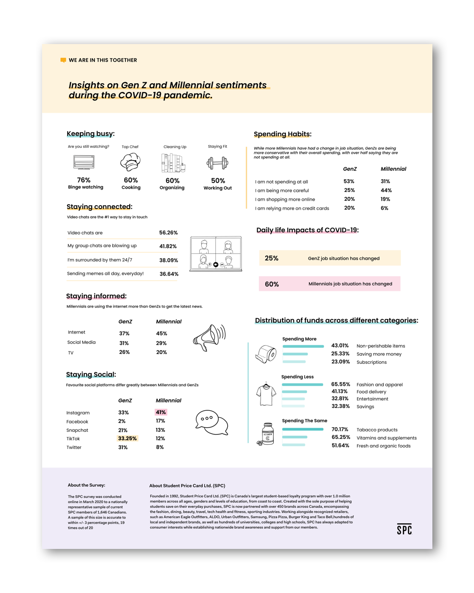 Organizing information and creation of illustrations to depict findings from the surveys filled out by the GenZ and Millennial Demographics.