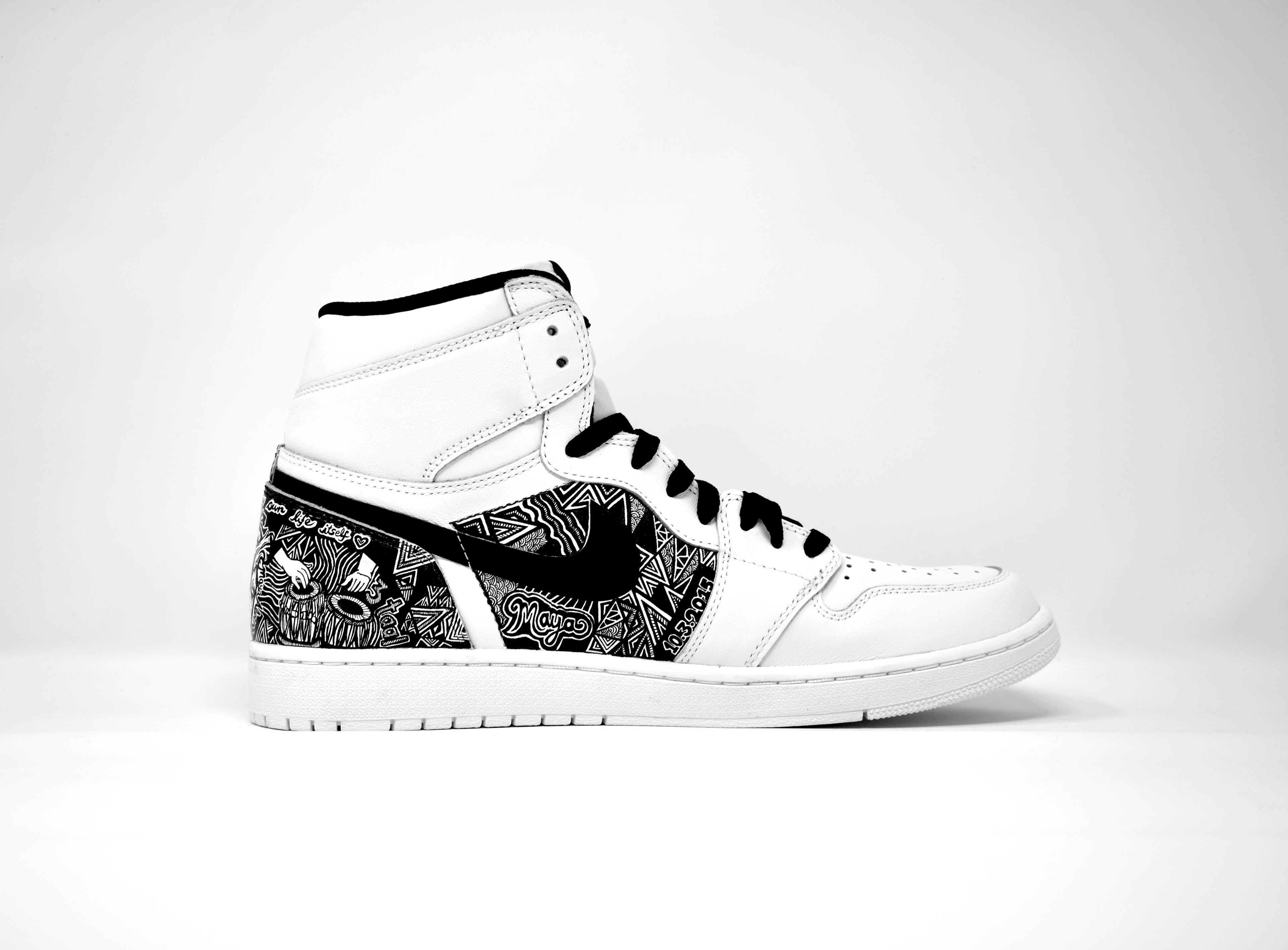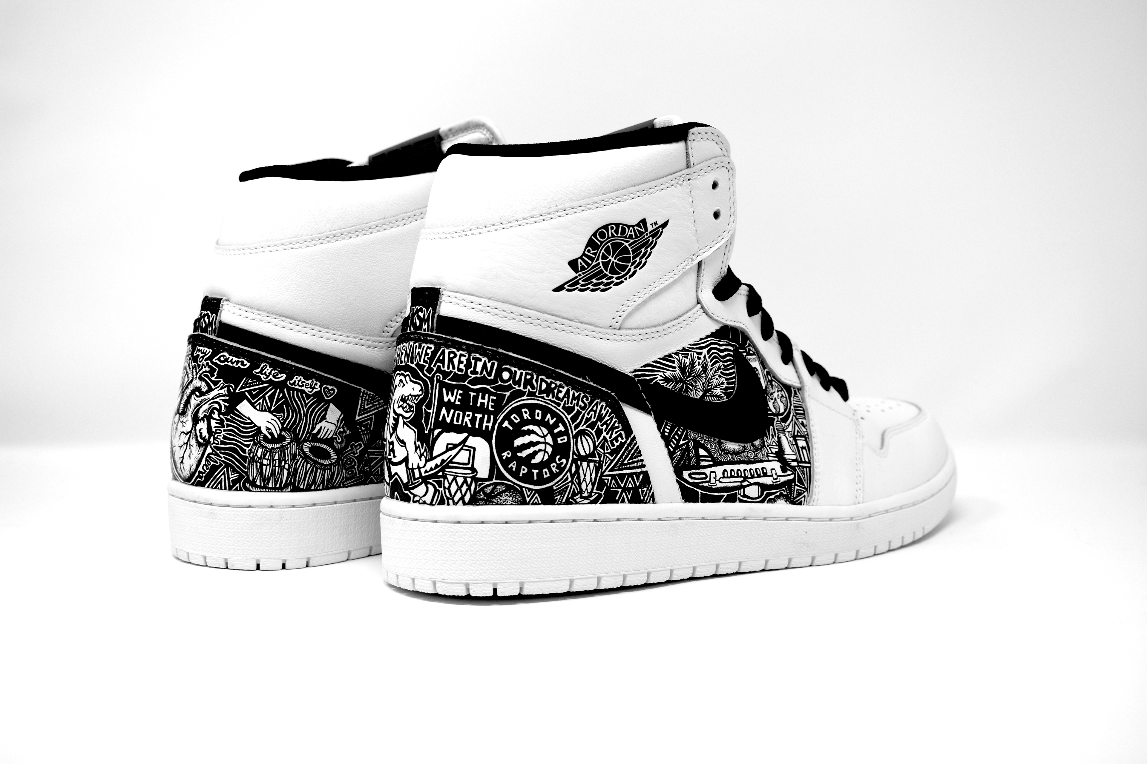 (2020) Ink on Air Jordan 1 Retro High OG Premium 'Yin Yang' This pair of Air Jordan sneakers has over 25 symbols, quotes, and dates that represent the wearer, his family, his interests, and his aspirations.
